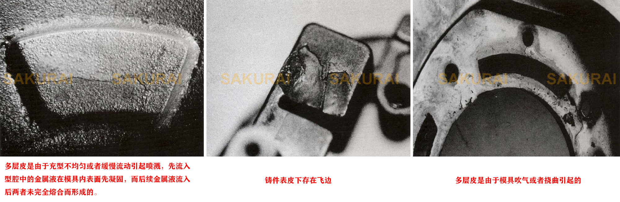 缺陷:多層皮:鑄件表面或內部有明顯的多層金屬皮